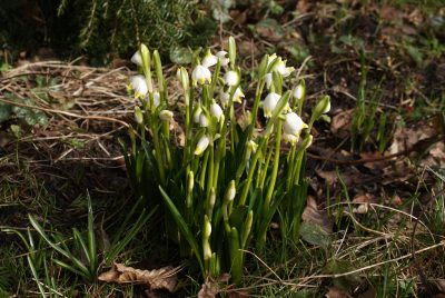Seit Freitag, den 15. Februar herrscht hier Frühling mit Temperaturen bis zu 11 Grad und wenig Wind, so dass die Märzbecher innerhalb der drei Tage aufgeblüht sind. Schneeglöckchen und Winterlinge blühen sowieso schon seit Januar.
